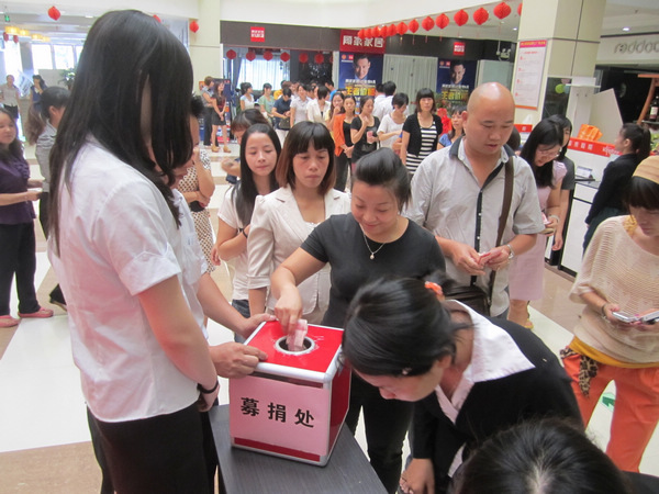 (捐款現(xiàn)場(chǎng),員工紛紛獻(xiàn)出自己的一份愛心)