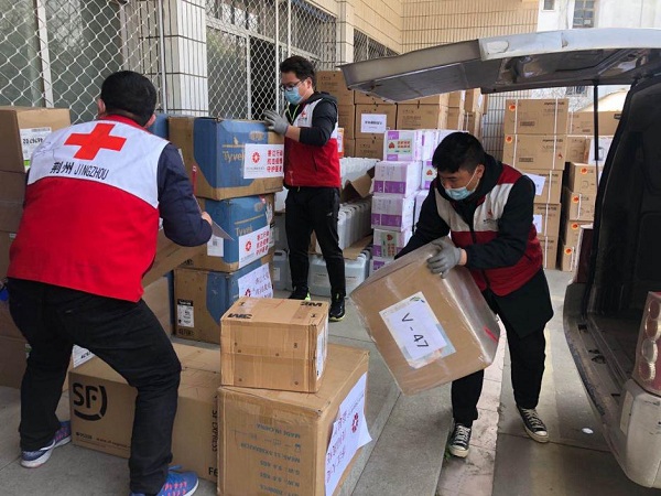 ↑來源:荊州紅十字會搬運香江社會救助基金會捐贈的物資