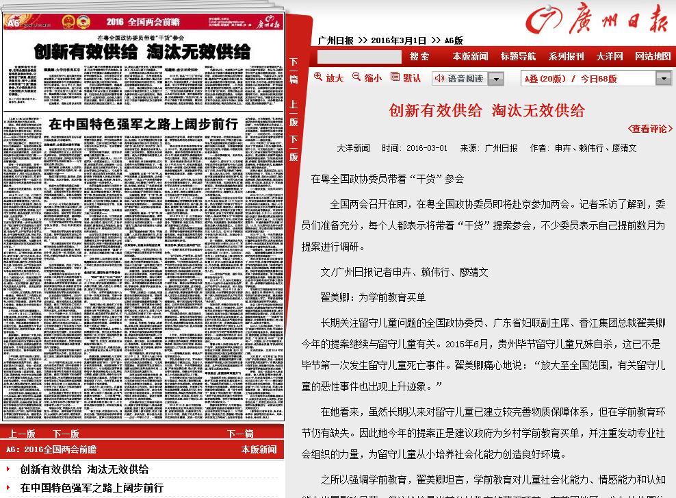 長期關(guān)注留守兒童問題的全國政協(xié)委員、廣東省婦聯(lián)副主席、香江集團總裁翟美卿今年的提案繼續(xù)與留守兒童有關(guān)。2015年6月,貴州畢節(jié)留守兒童兄妹自殺,這已不是畢節(jié)第一次發(fā)生留守兒童死亡事件。翟美卿痛心地說:“放大至全國范圍,有關(guān)留守兒童的惡性事件也出現(xiàn)上升跡象。”